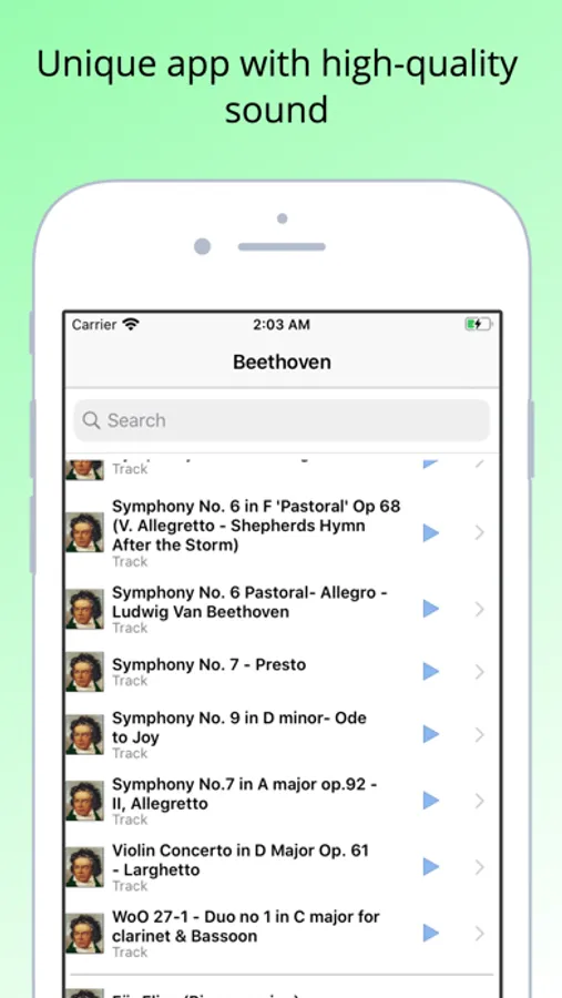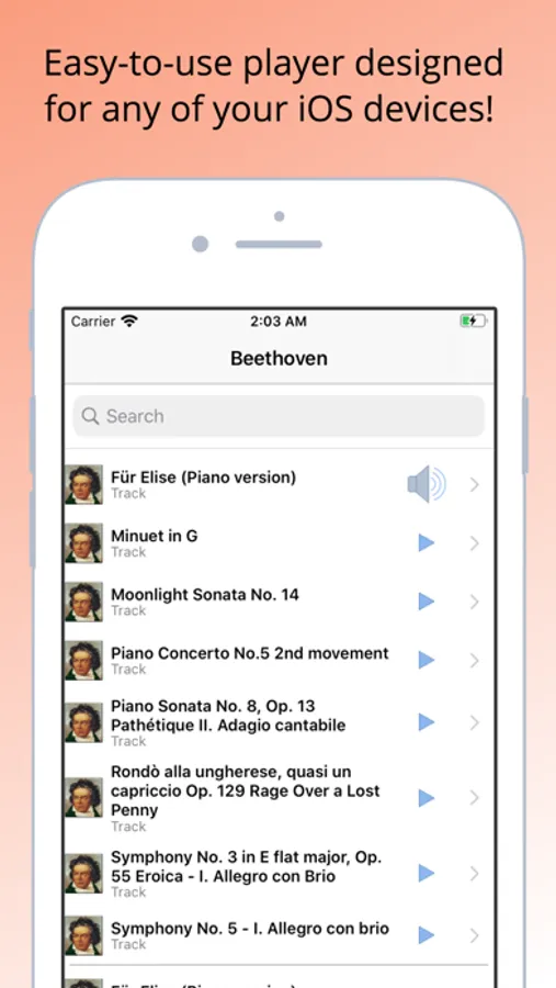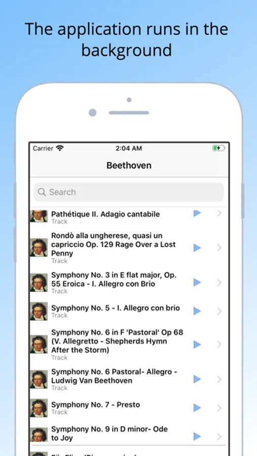 Enjoy Beethoven's music anytime. Available on iPhone/iPad. Runs in background mode.
