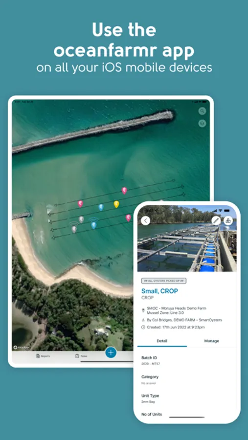 Our oceanfarmr app is suitable for a wide range of aquaculture operations. This includes shellfish, seaweed, echinoderms, and finfish. We can even provide for wild harvest operations, restoration monitoring, and scientific data collection.