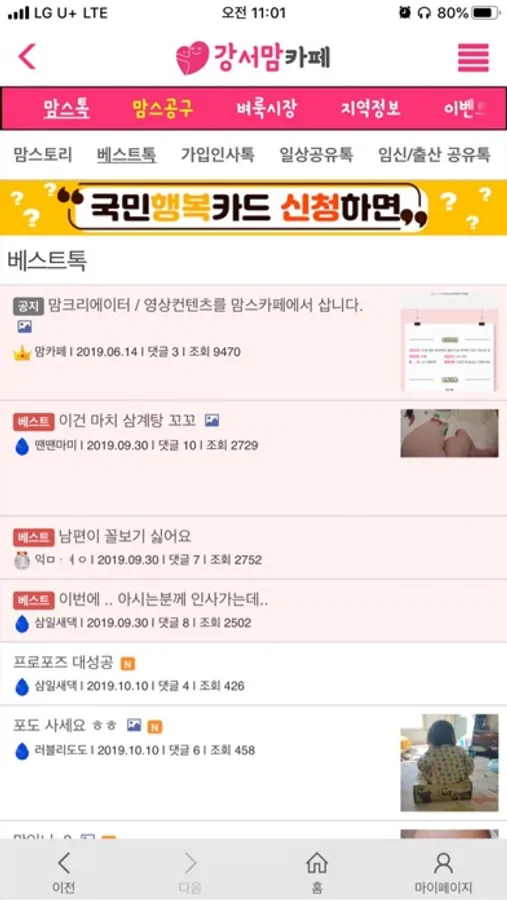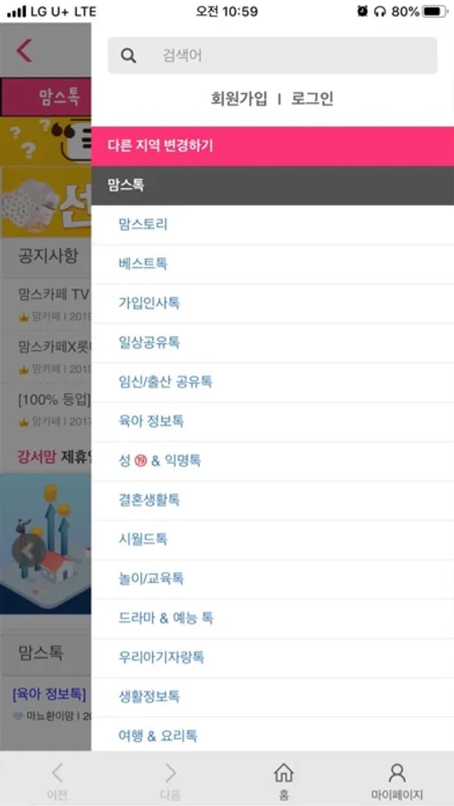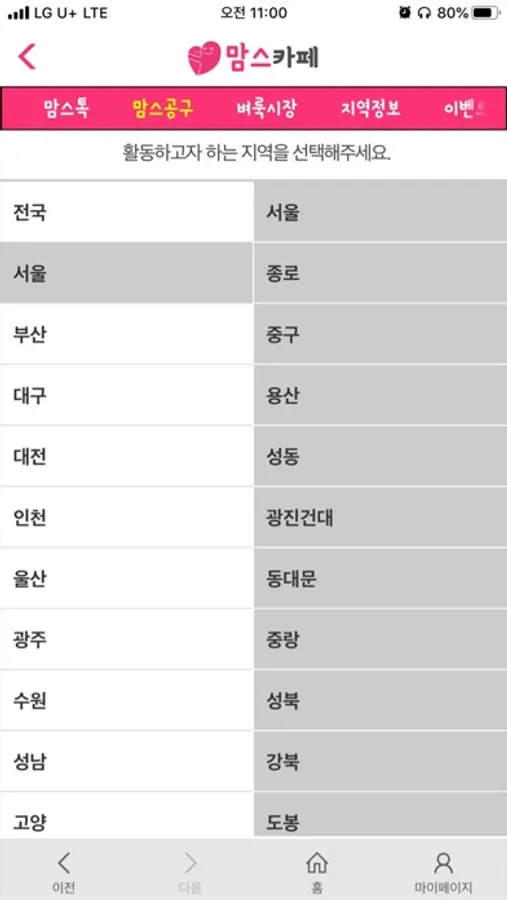 다양한 지역별 정보공유를 할 수 있는 맘스카페020 - 지역맘수다 어플입니다.