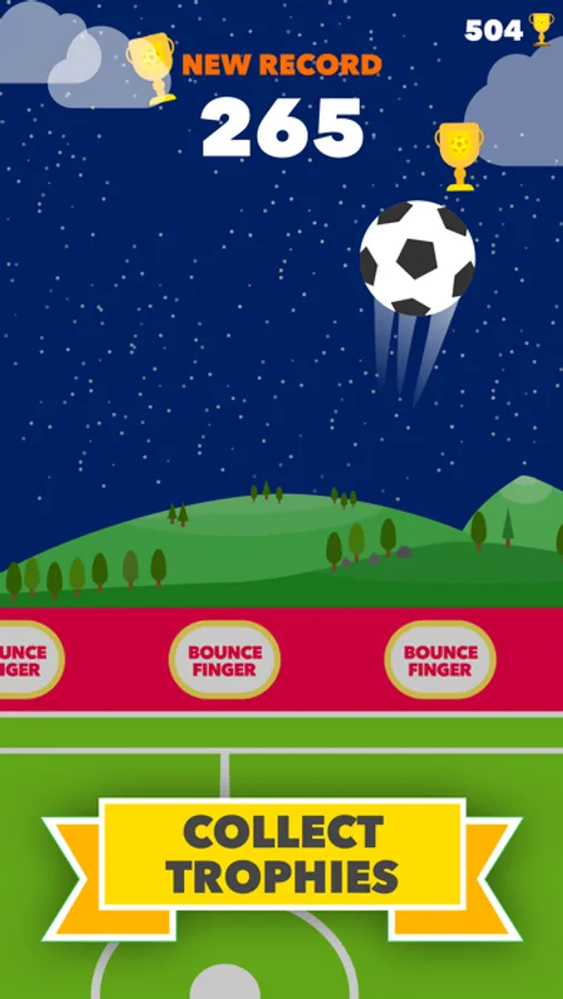 Bounce Finger is a soccer game where you bounce with your finger and get as many points as you can.