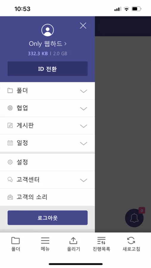 웹하드™는 "LG U+" 가 국내 최초로 만든 클라우드 서비스로서 365일 전세계 어디서나 중요한 파일을 저장/관리하고 다른 사람과 안전하게 공유 및 협업할 수 있습니다.
