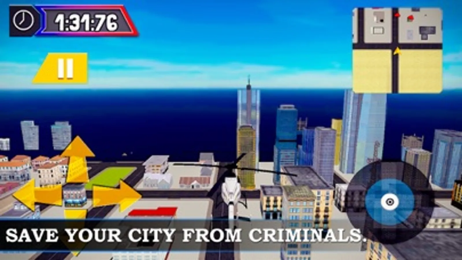 Helicopter pilot duty starts for you in this police chase 3D of criminal cars. So patrol from sky above on city streets and look for suspicious drivers who may be escaping from scene of crime. Enjoy this high-tech flight of police interceptor to target & arrest speeding criminals to put them behind jail bars. Yes .. help your colleague police officers in this helicopter crime arrest. So, are you ready to fulfill a new cop duty in flying helicopter and look for rash driving vehicles?