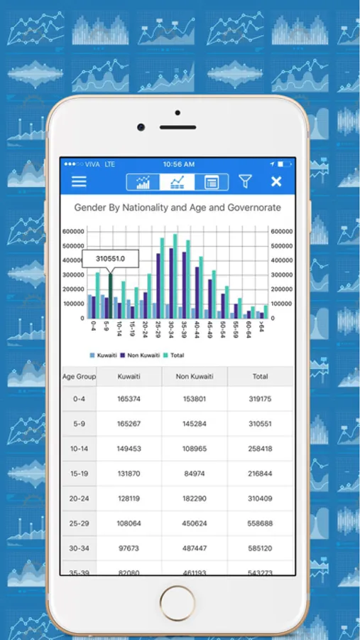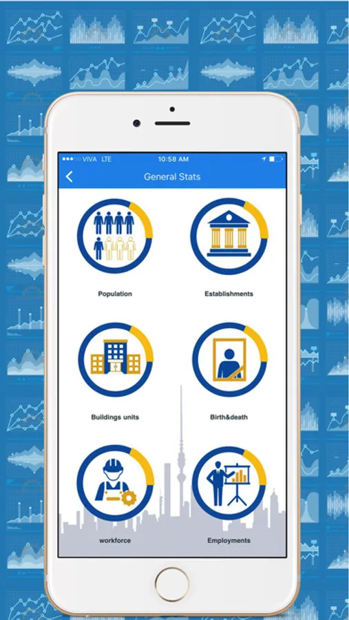 Using this app, you can access data about population, labor workforce, marriage, buildings, units, establishments, employment, births, and deaths in Kuwait based on time reference point.