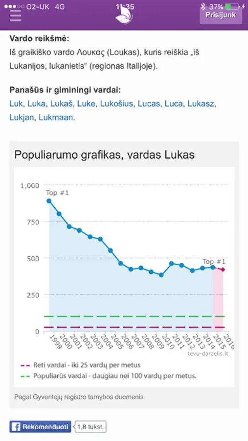 - Vaikų vardų duomenų bazė su išsamia statistika.
