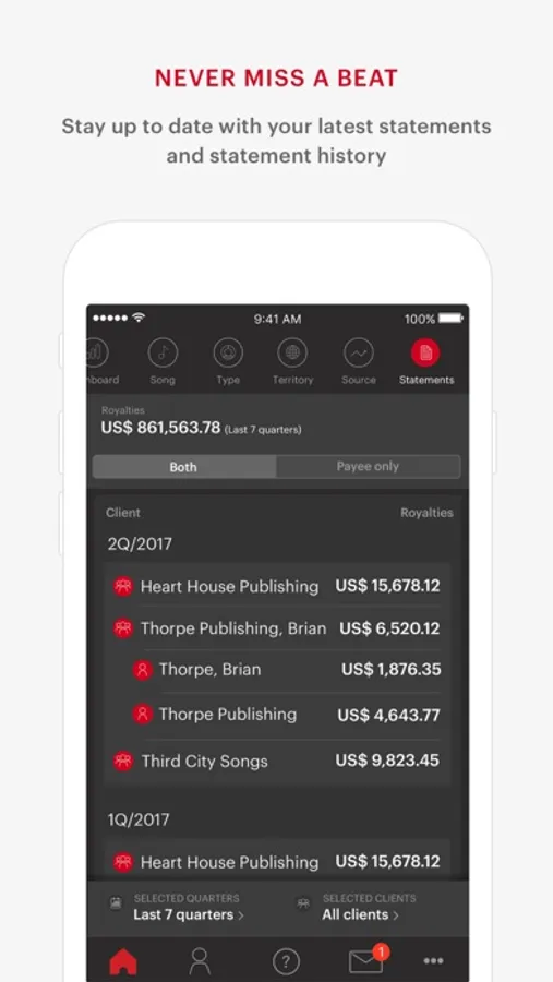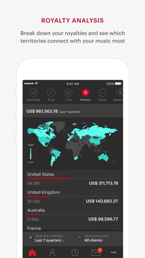 Service: Access historical and projected royalty data 24/7 on your mobile device or tablet.