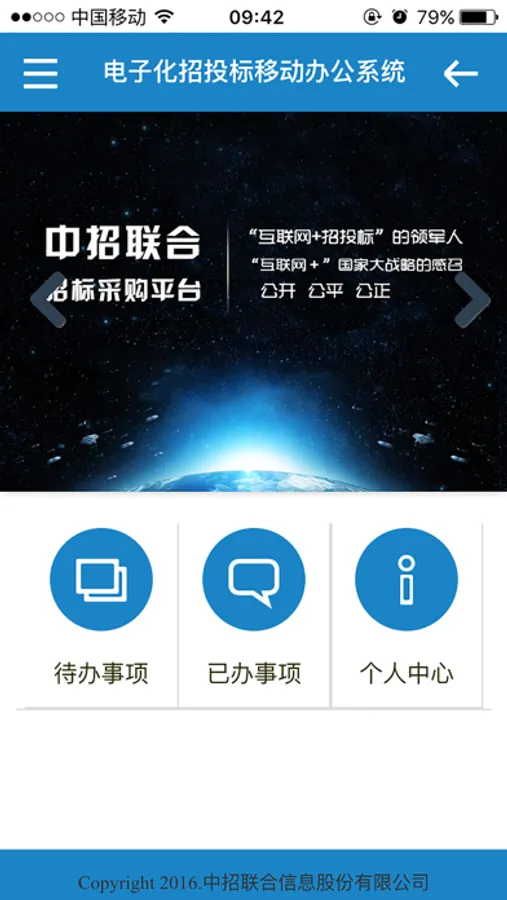 为中招联合电子招投标平台的招标代理用户提供移动处理各类审批待办事项。