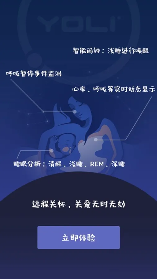 有宁睡眠是一款集睡眠监测、辅助入眠、夜间预警等多功能于一体的APP与硬件相结合的产品,并充分考虑了多种睡眠应用场景,为用户提供更贴心的设计。有宁睡眠不仅可以作为睡眠监测工具,记录并跟踪睡眠变化曲线,也可以作为辅助睡眠产品,陪伴入睡,还可以作为智能闹钟,浅睡眠唤醒。另外,通过有宁睡眠APP的账户关联,还可以与亲友间进行数据共享……