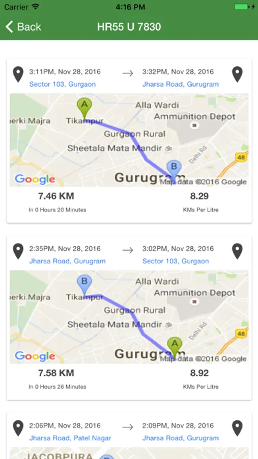 Tracking your vehicles by trip along with driving alarms and playing it back.