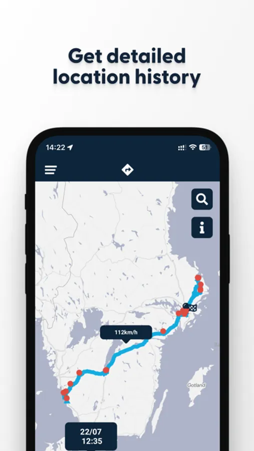 In the user-friendly app, you can use the live tracking feature to see your SweTrack device's real-time position. You who have multiple SweTrack devices can of course show all devices simultaneously on the map, or choose to follow a specific device's location. The map also supports multiple maps like satellite imagery.