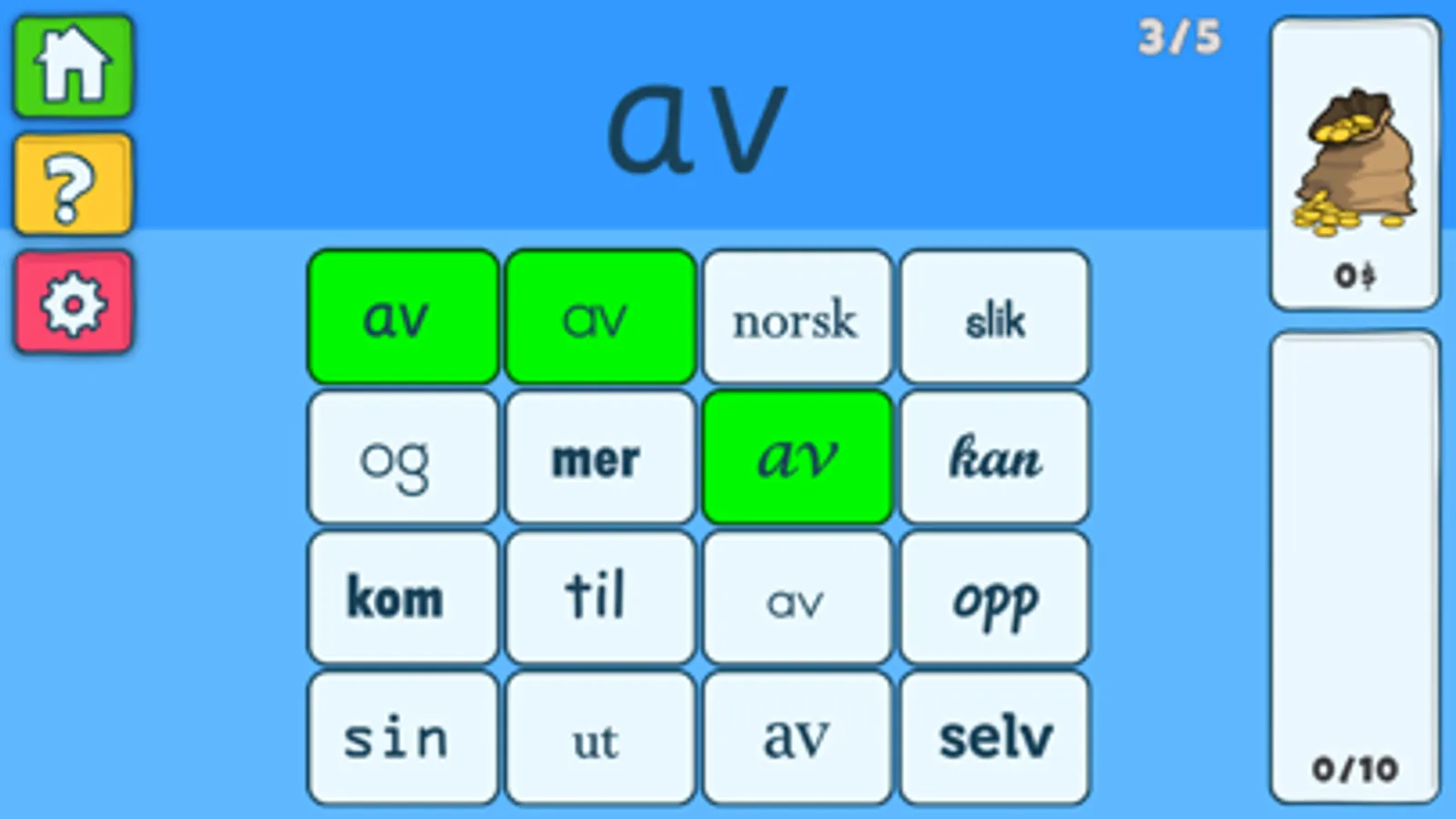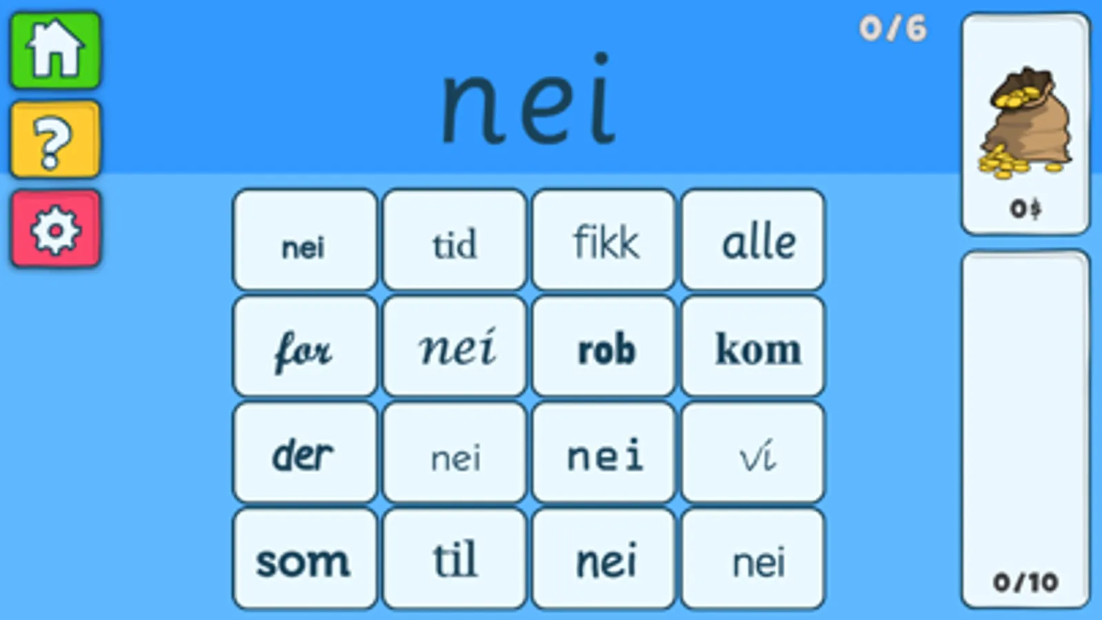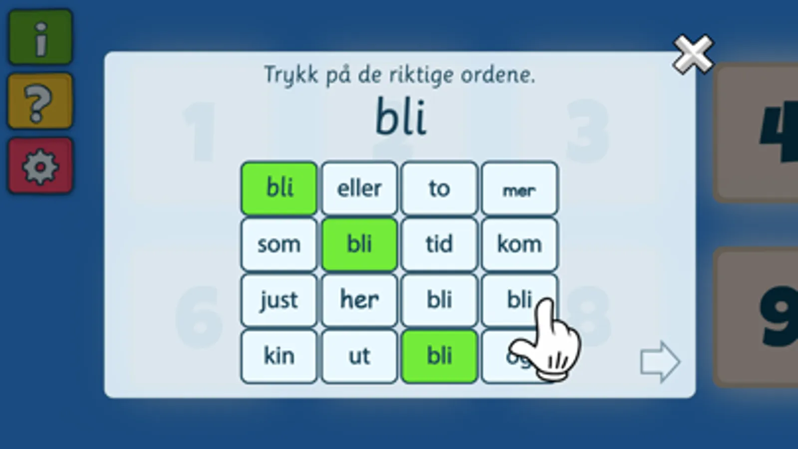 "Høyfrekvente ord i rutenett" er en god app som hjelper barnet til å øve på ordbilder av de 100 mest vanlige ordene.