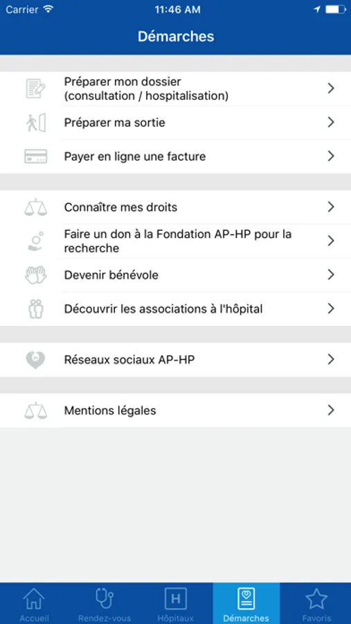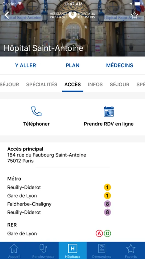 • sélectionner son hôpital favori accessible dès l’écran d’accueil ;