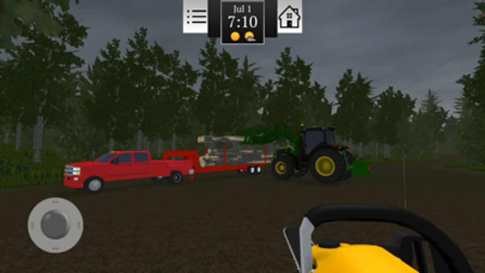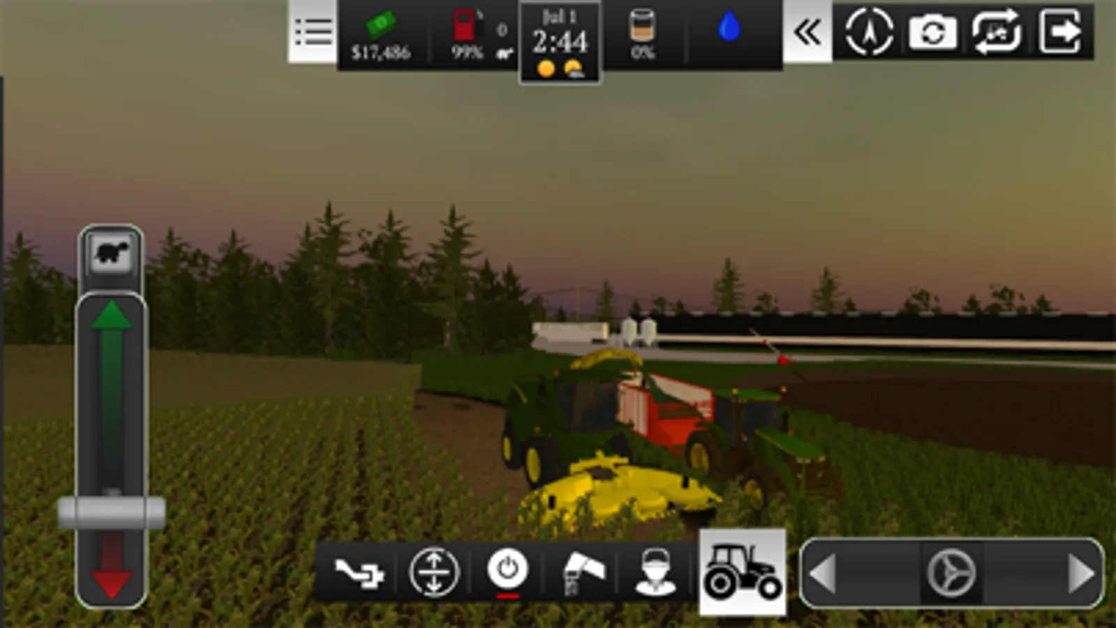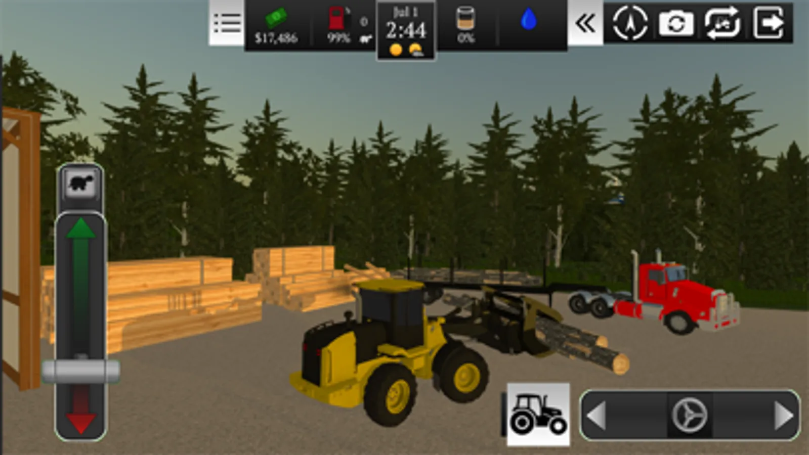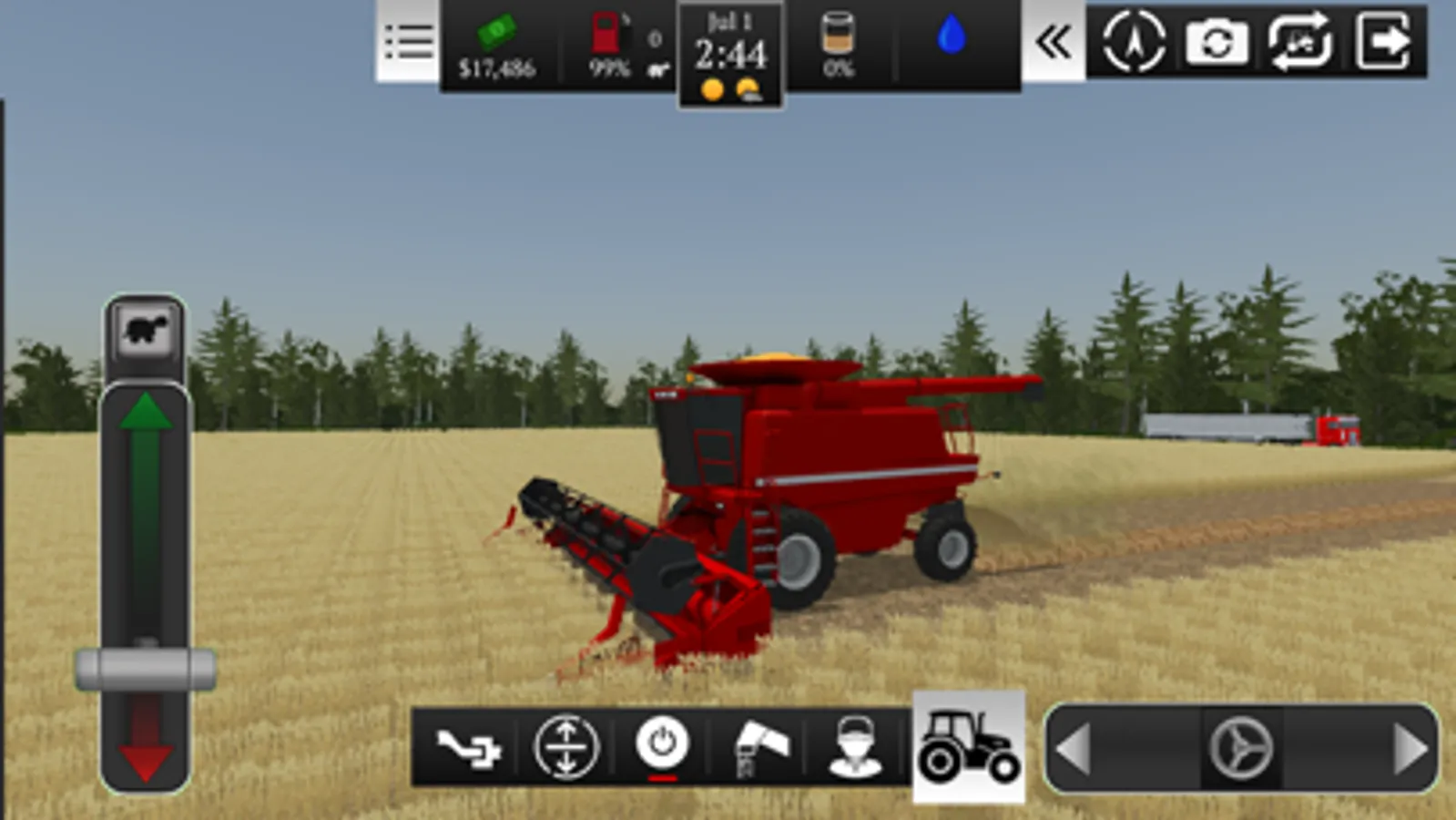 Watch the weather as rain and sun affects the growth and harvest of crops! Too much rain and your fields become muddy. A hard snow in winter will require you to hook up the snow plows to get out of the lot.