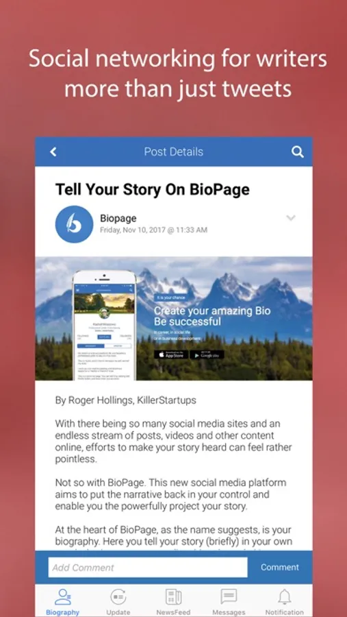 * A prominent "Biography" page with plenty of space, in clean and simple format. Be self-expressive and creative to tell who you are, whether it’s about your school, career, social life, or business.