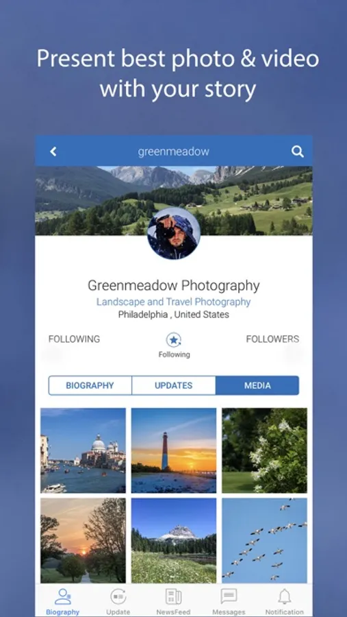 ** Post "Updates", stories with best photos or videos, nice and clean.
