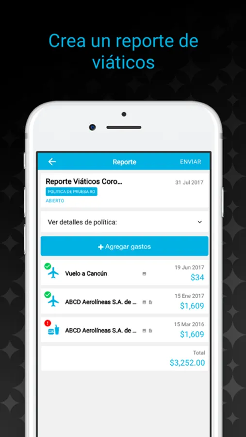 • Envía tus reportes a cualquier persona (responsables de aprobar tus gastos).