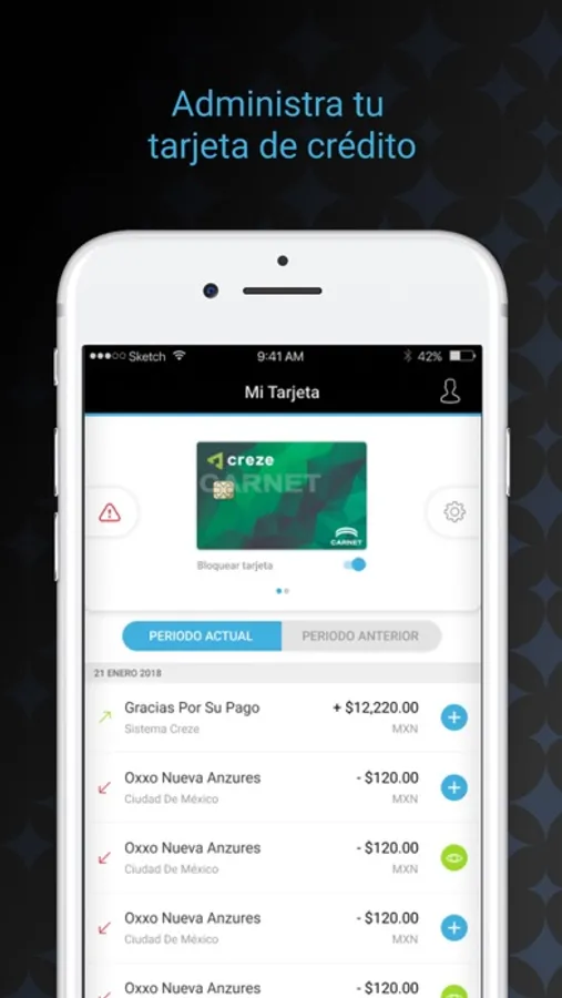 • Administra tu tarjeta de crédito desde la App. Aquí puedes: