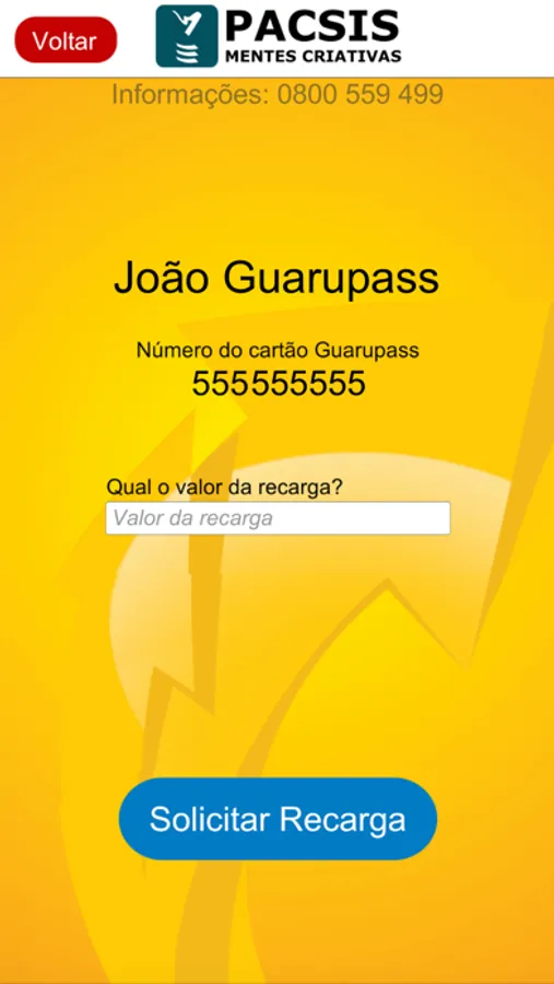 Com este aplicativo instalado em seu celular, será possível solicitar recargas para seu cartão Guarupass de forma simples e rápida, acompanhando o status de seus pedidos.