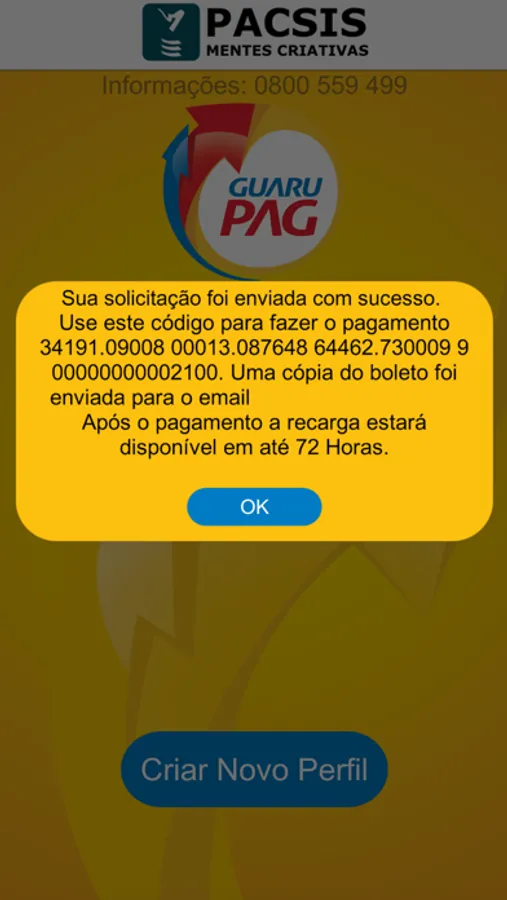 Após o pagamento do boleto, em até 72 horas o valor referente ao pedido, descontado o valor da Taxa de serviços, será creditado em seu cartão.