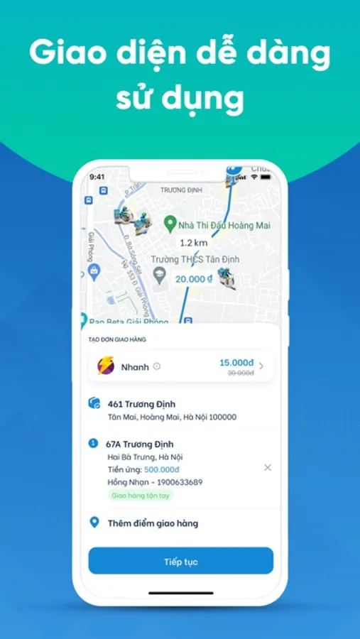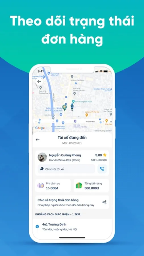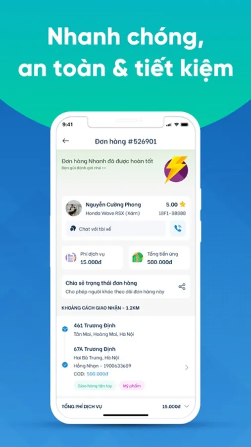 - Tài xế gần nhất nhận đơn, lấy hàng trong 10 phút và giao hàng trong 20 phút