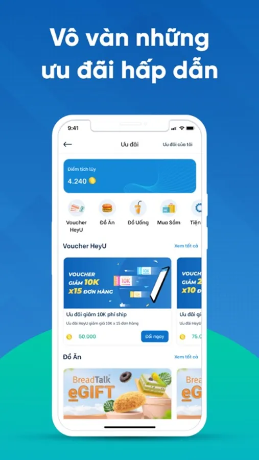 - Nhiều ưu đãi hấp dẫn, tích lũy điểm để đổi e-voucher các phần quà giá trị
