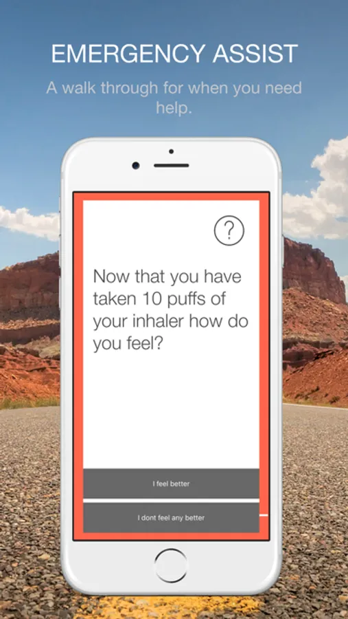 Emergency assistance guides you through an episode (asthma attack) to use correct medication and know when to call for the emergency services.