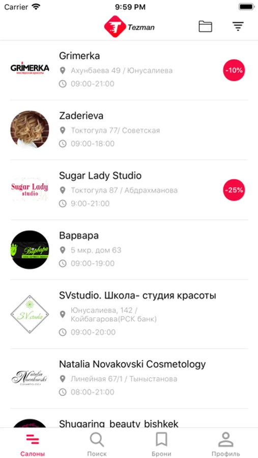 Tezman – это платформа для бронирования услуг в салоны красоты и медицинские учреждения Бишкека.