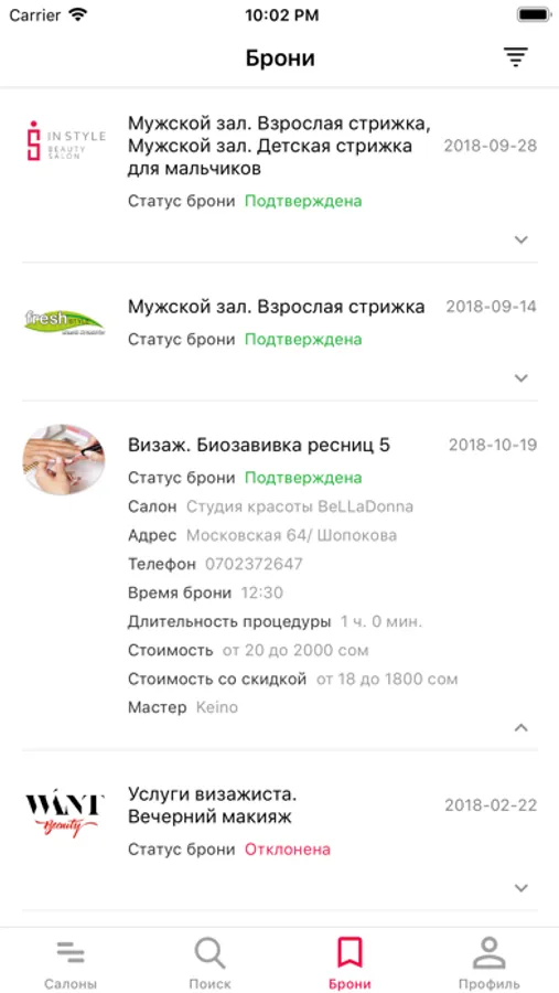 - Получайте оповещение о бронировании, чтобы не пропустить запись.