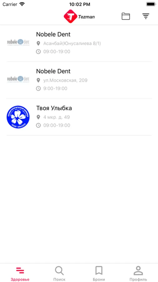 Бесплатное приложение Tezman позволяет Вам бронировать услуги различных салонов красоты и медицинских центров в два клика.