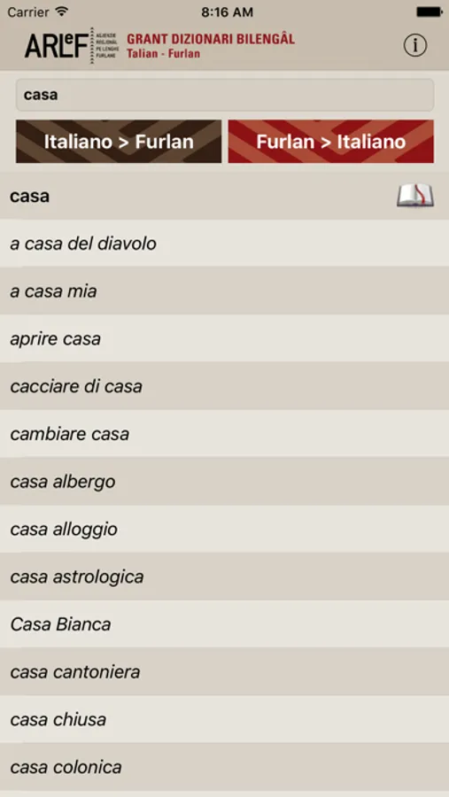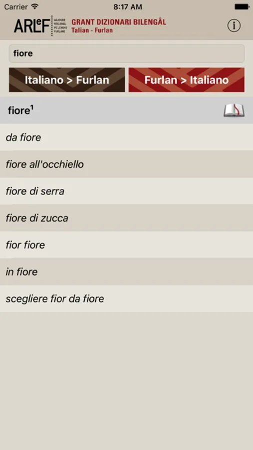È progettato per la ricerca in via prioritaria dall’italiano al friulano. La ricerca di un lemma dal friulano all’italiano, quindi, produce risultati che sono da considerare come l’inversione dell’ordine dei risultati che si ottengono nella ricerca del lemma, con lo stesso significato, dall’italiano al friulano.