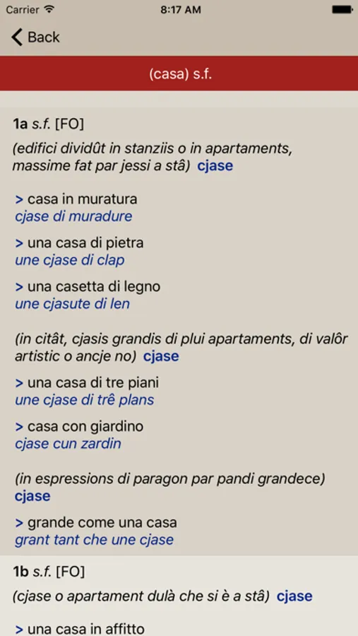 Al è progjetât pe ricercje in vie prioritarie dal talian al furlan. La ricercje di un leme dal furlan al talian, duncje, e prodûs risultâts che a son di considerâ tant che la inversion dal ordin dai risultâts che a vegnin fûr te ricercje dal leme, cul stes significât, fate dal talian al furlan.
