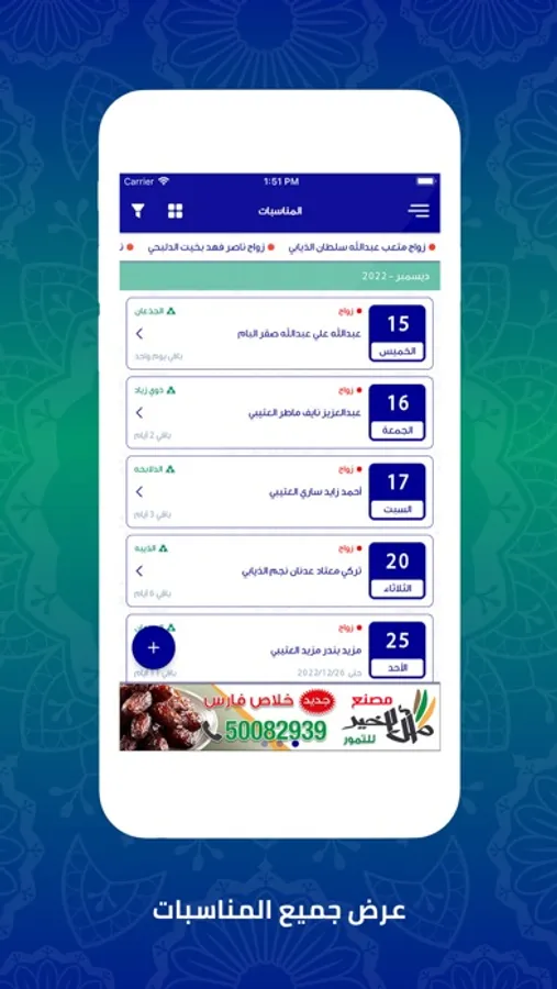 • أمكانية تفضيل اي مناسبة للرجوع له لاحقاً.