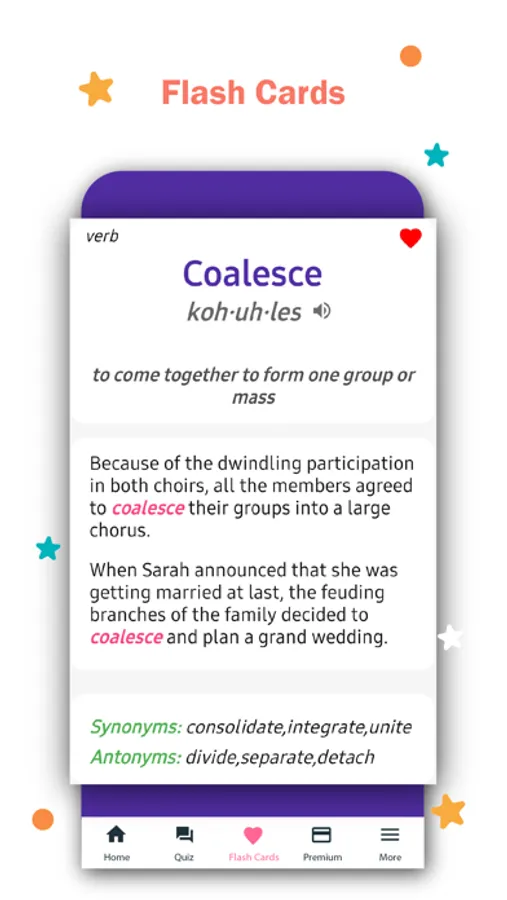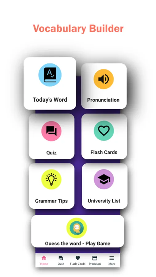 Premium Word of the Day - For no Ads, access to advance words quiz and to save more than 10 flash cards: