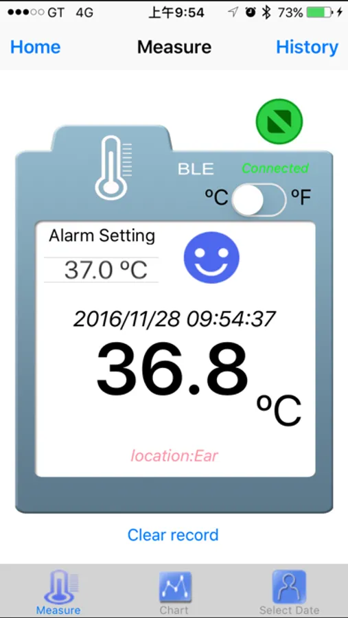 1.This is the APP support BLE4.0 GATT Services UUID 1809 and 1810 device(all Blood Pressure Meter and Health Thermometer Device)