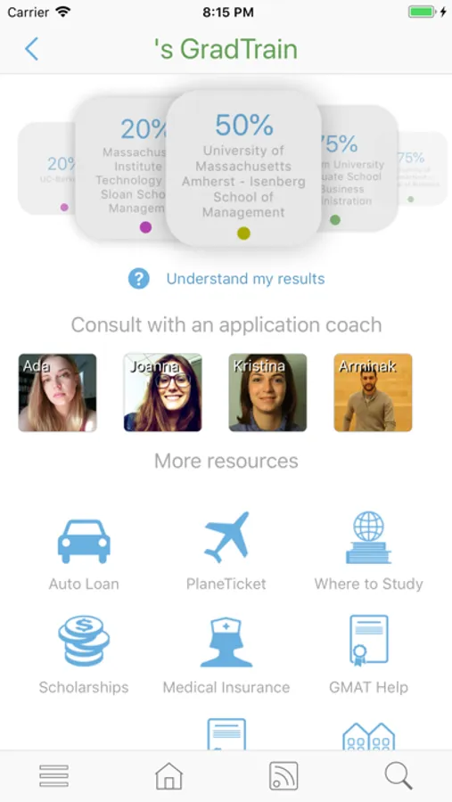 On the GradTrain platform, prospective students use predictive algorithms to gauge their chances of acceptance to universities and meet with current and former students for online coaching sessions.
