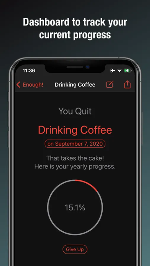 Stopping doing something is not easy. Enough! will show you real-time statistics on your progress to help you stay strong and motivated. By seeing your progress, it may give you that extra push to follow through.