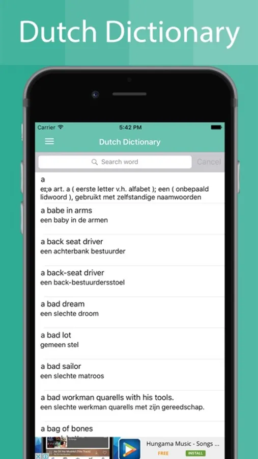 One of the Best Dutch Dictionary in Appstore. you can learn Dutch Language very quickly and easily from this utility application. Dutch Dictionary Contains more than 2,00,000+ English words with more than one Dutch Meanings and most powerful feature is all data is offline you don’t need Internet connection to use this Dutch Dictionary.