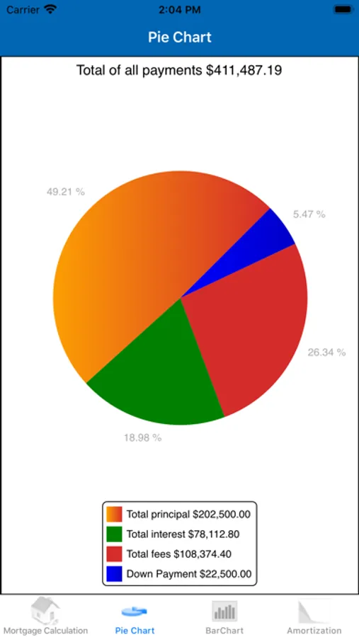 - Mortgage calculator estimates your monthly payment and divides it into principal, interest, and fees