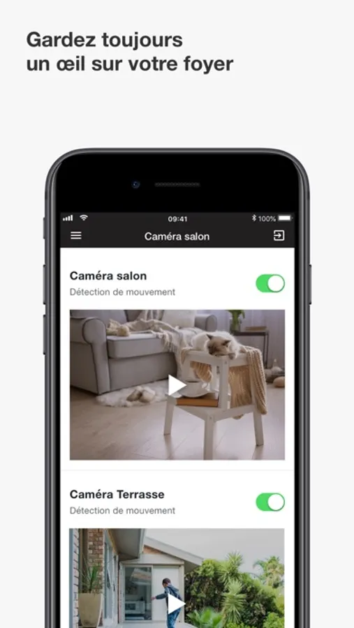 - Images filmées par les caméras et les détecteurs à prise d’images consultables 24h sur l’application