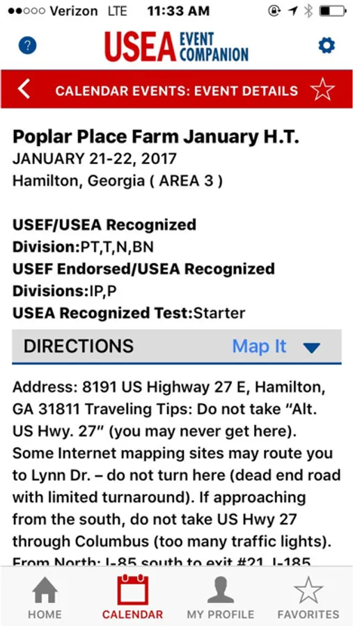 With the Event Companion App, you can sort events by name, date or distance and search by name, date and level. If you have an event you regularly attend, you can “favorite” that event, which will save it to a personalized list. This allows users to quickly access information for their most frequented events. Your favorite events can also be stored offline, so you can access information even when you are out of network.