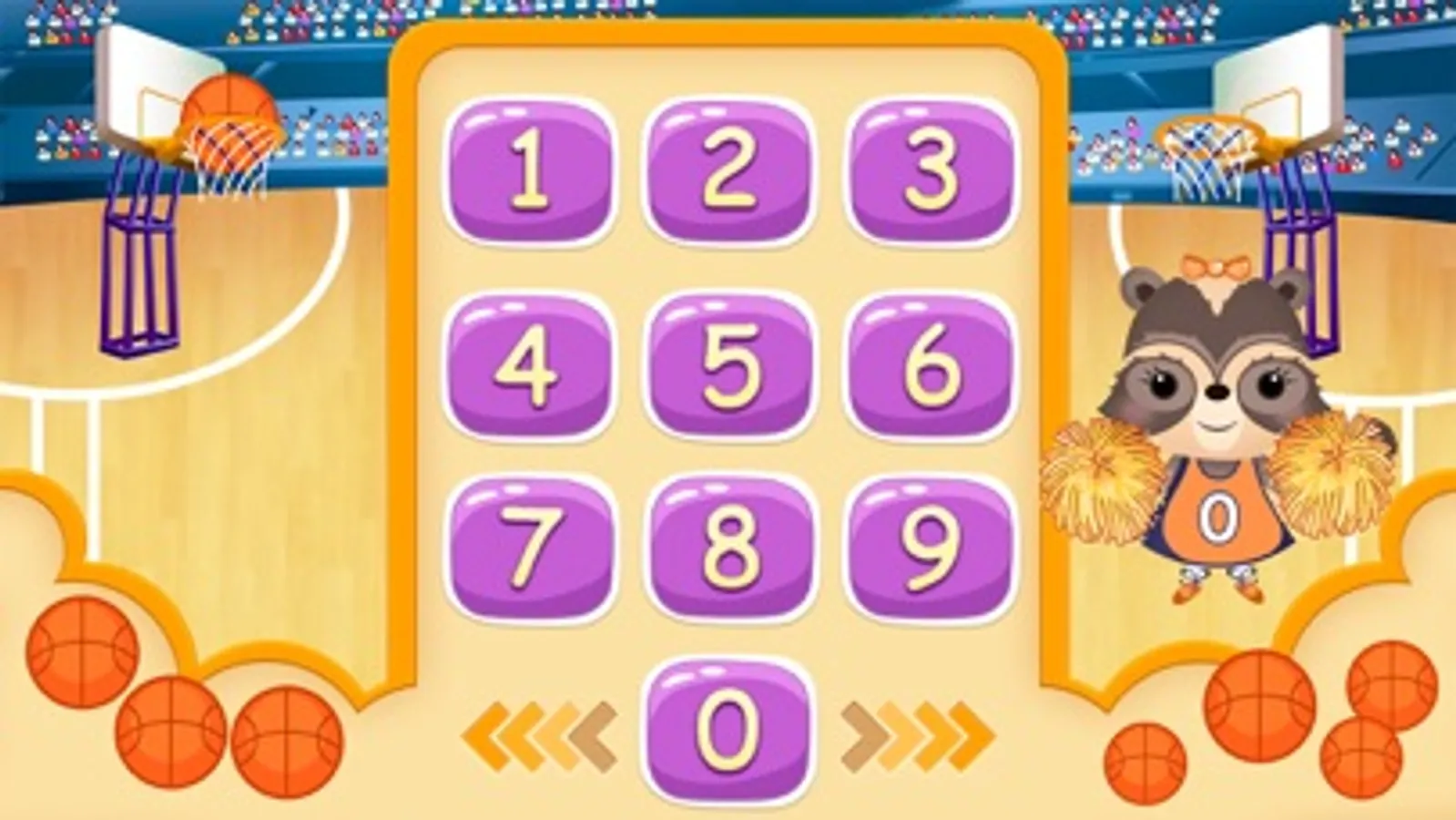 Learn and practice numbers. Kids will be able to learn the numbers from 0 to 9 in an interactive and visually compelling manner. Candy the Raccoon will be there to guide them. Together, they will visit a basketball court. A little jumping around with basketballs will make counting more fun, so children won’t get bored.