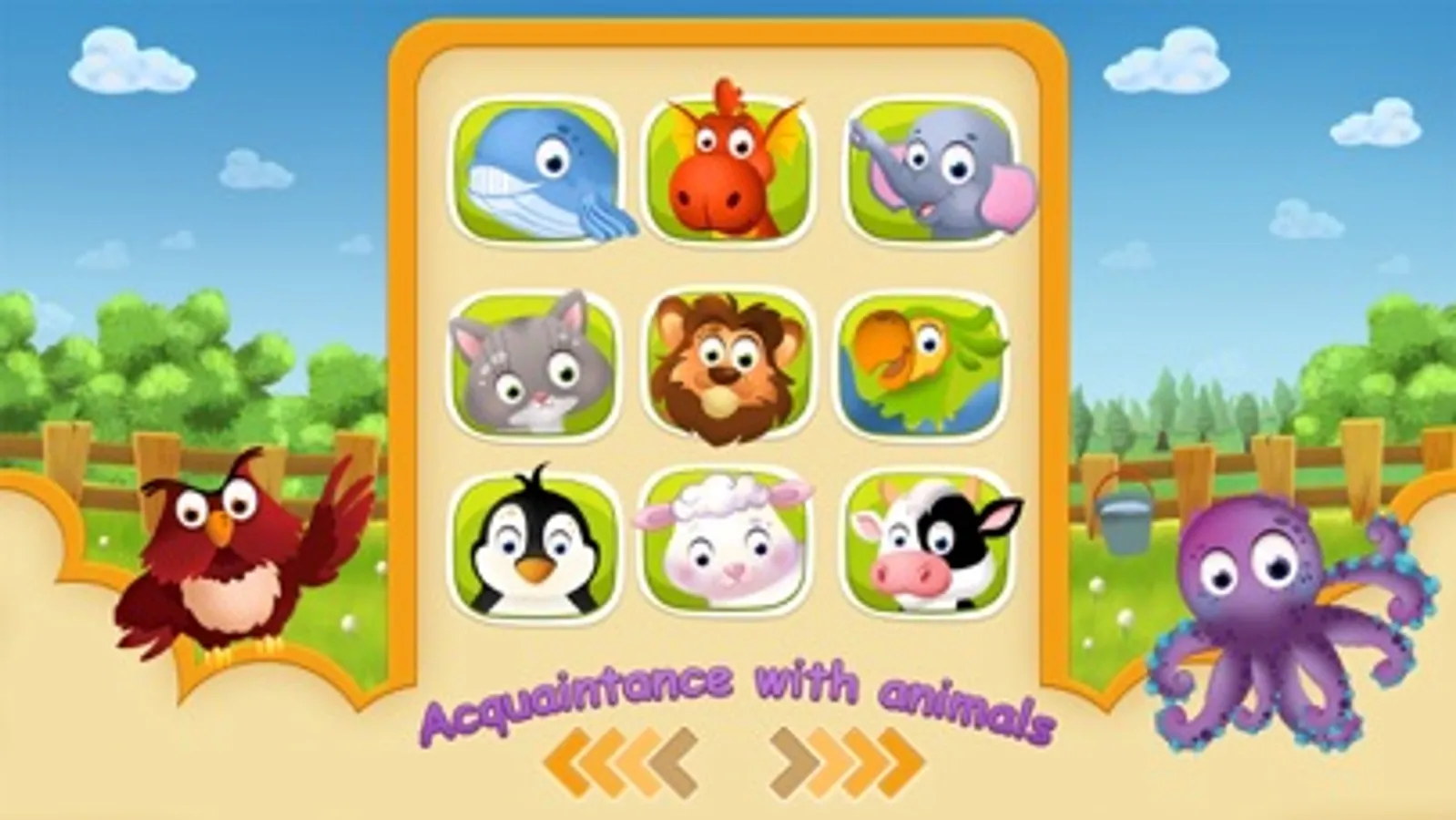 Learn the animals: whales, cows, sheep, elephants, penguins, dogs, lions, parrots, cats, octopuses, owls and even dragons. Children will learn to identify them during play by pressing different buttons. In response, they will hear a puppy barking, a cow mooing, a kitten meowing, a sheep bleating, a lion cub roaring and other animals “communicating” with them through the phone.