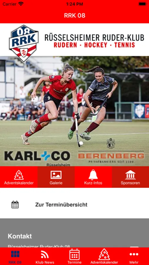 Unsere App informiert sie ausführlich. Umfassende Informationen (speziell zu unserer Hockey-Abteilung) mit Events, Spielberichten und natürlich dem direkten Kontakt zum Verein. Ab jetzt nichts mehr vom Rüsselsheimer RK verpassen!