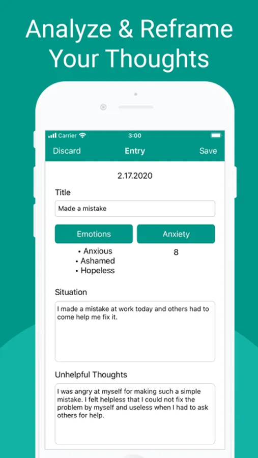 Thought Diary - Challenge and reframe your unhelpful thoughts with this cognitive therapy technique