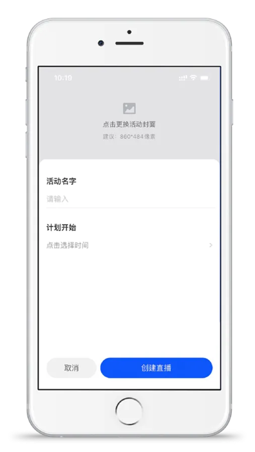 - 创建活动:可设置标题、开始时间自动生成直播页