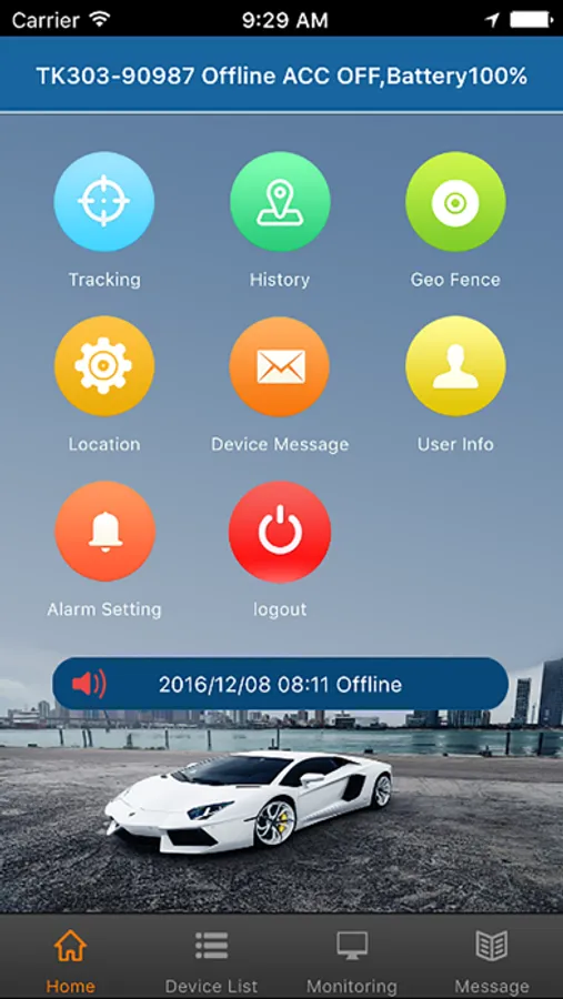 Tracker King APP every day is a real time query the car position, to real-time tracking of the car, view your history, set up electronic fence alarm functions, such as real time to ensure the safety of the car.