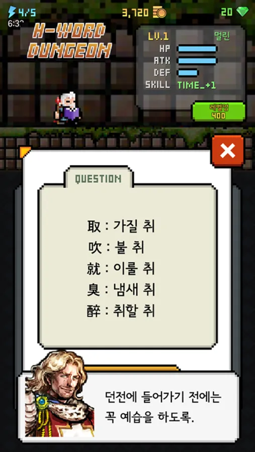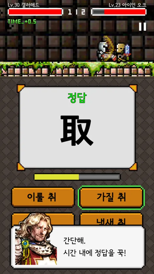 용사와 함께 게임을 하면서 한자를 재미있게 익히세요!