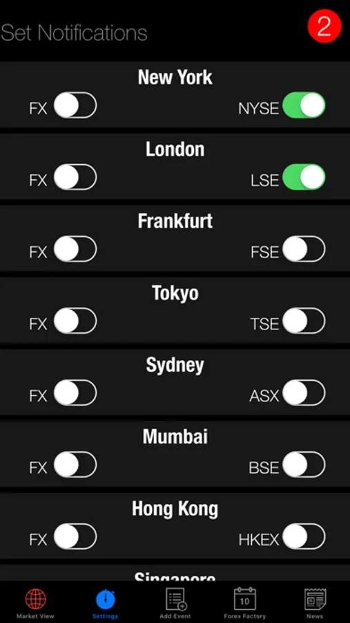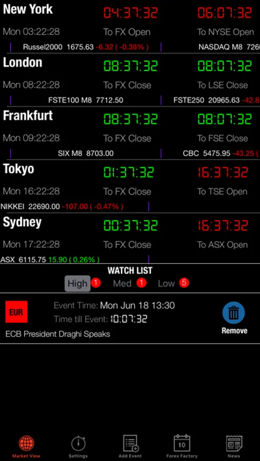 -Countdown to the opening and closing bell for both Forex and Stock Exchanges.
