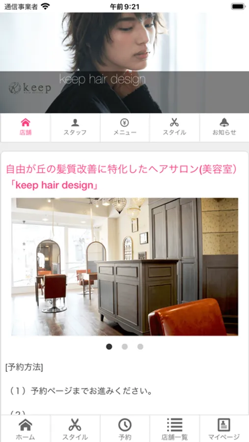 希望スタッフのスケジュールを確認して、いつでもどこでも手軽にサロン予約。