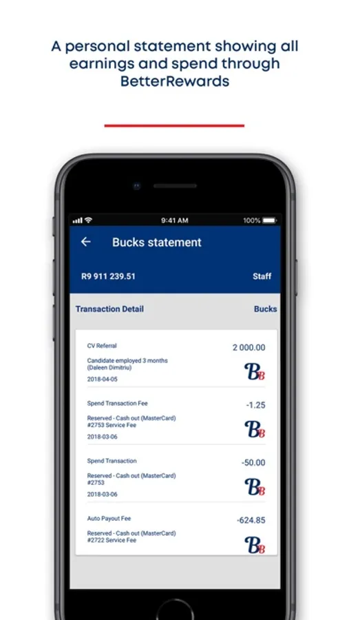 BetterRewards statement - A personal statement showing all earnings and spend through BetterRewards. BetterBucks is earned by submitting qualifying OTP’s to BetterBond