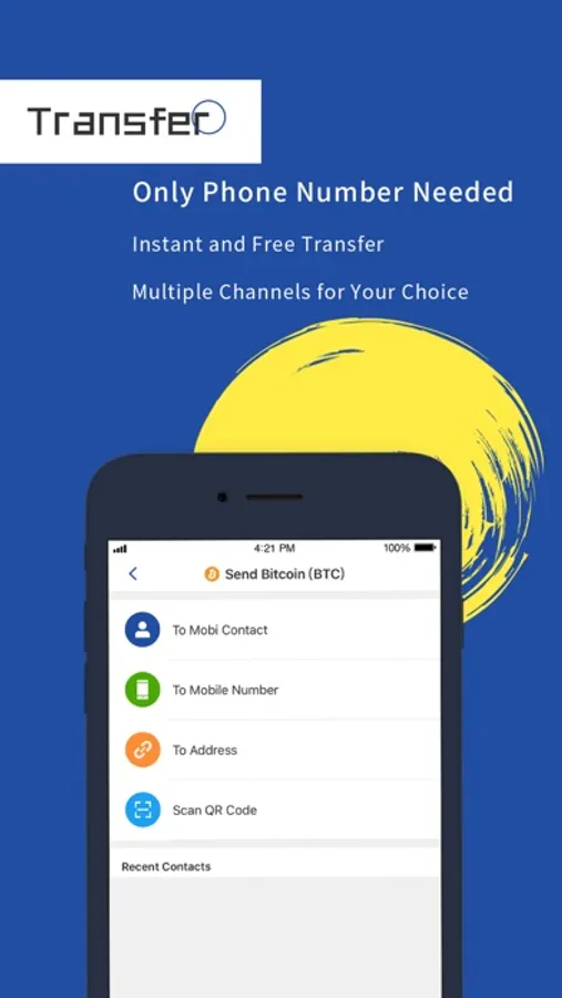Mobi is a multi-currency digital assets management tool that goes beyond wallet storage. All you need is to register with your phone number to send, store, and transfer Bitcoin and at least 18 other popular cryptocurrencies. Mobi also provides financial services such as Bitcoin conversion to multiple fiat currencies, OTC (over-the-counter) trade, and a savings return function.